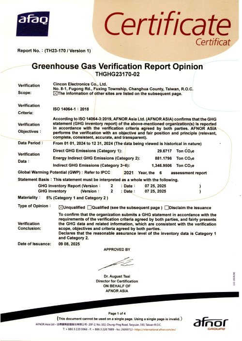 ISO 14064-1:2018 Taiwan Factory (2024 Report)